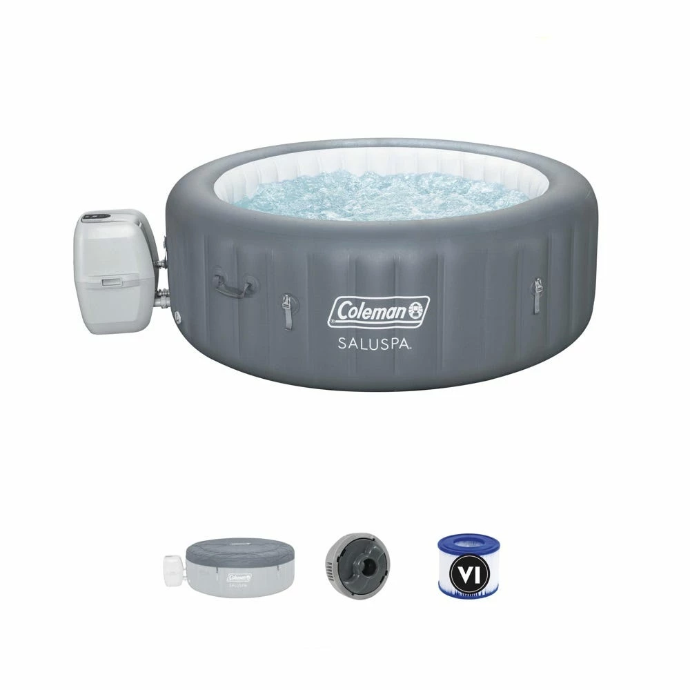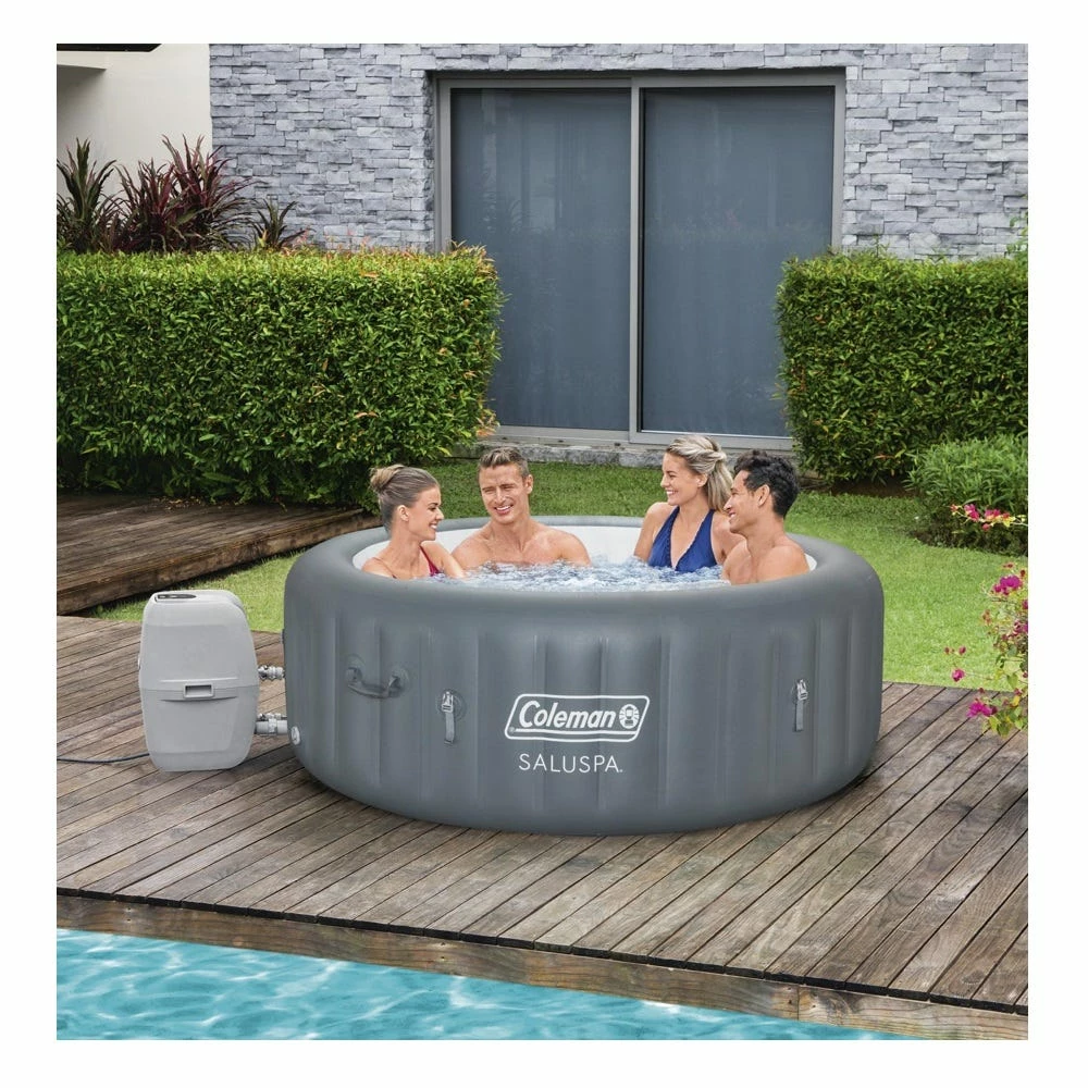 After a long day, there’s nothing more relaxing than sinking into warm, bubbling water right in your own backyard. The Coleman® SaluSpa® AirJet™ provides a soothing massage experience for up to 6 people, while still being quick and easy to set up. Simply attach the pump and watch as it inflates. Soothing Massage System: The AirJet system features 140 jets which release bubbles from the bottom of the spa to create a warm, bubbling hot tub environment. These soothing bubbles will help you relax and unwind right from the comfort of your home. Durable Construction: This spa’s inflatable walls and internal beams are made of durable, puncture-resistant, DuraPlus™ material which prevents damage. This type of internal construction prevents stretching and expansion, allowing the spa to retain the same shape no matter how many times it’s inflated and deflated. The included Freeze Shield™ automatic heating function prevents inner components from freezing during colder temperatures ensuring you can enjoy your spa year after year.