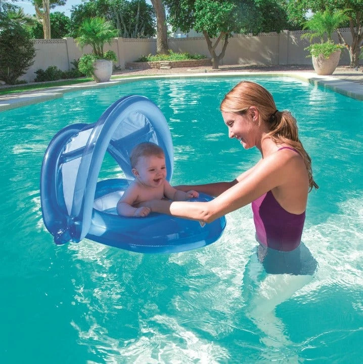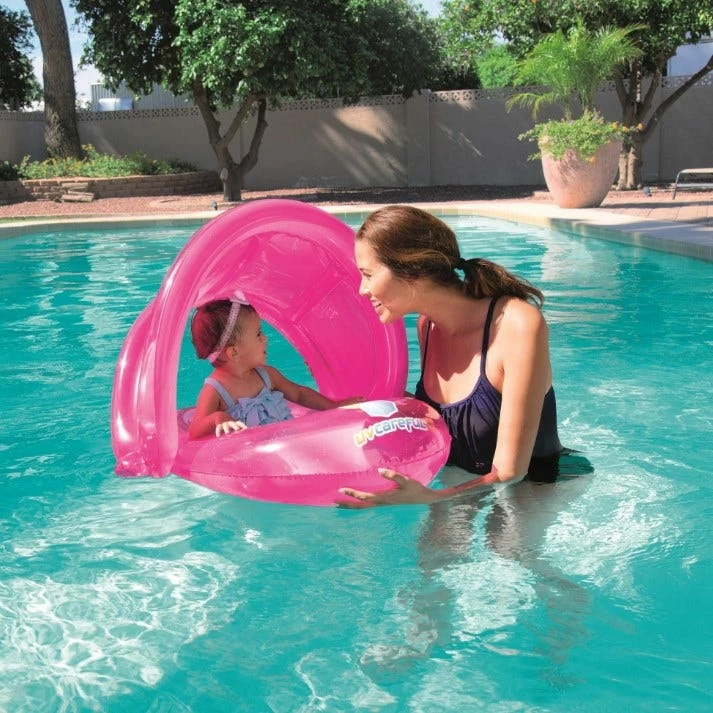 Designed to get kids moving, grooving and out of the house, this H2OGO UV Careful Baby Care Seat puts the focus back on fun! Available in 2 assorted colors, the Baby Care Seat has a detachable sunshade and smooth leg holes to keep your baby protected from the sun and comfortable in the water. Protect your children with sunshade, sunscreen, and specially designed UV Careful products. It’s all in the name – UV Careful!
