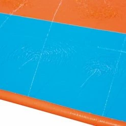 Get ready for a summer of thrilling backyard fun with the new H2OGO!® Double Water Slide. Line up and race your friends down the parallel. Enjoy a high-speed backyard adventure, as you blast down the slide with our specially designed UltraSlick™ PVC. The new PVC technology offers more slip and less grip with every slide. The innovative UltraSlick™PVC is formulated to create a slide surface that is so slippery, it feels friction free. We have combined this with our SplashBoost™ Sprinklers, a system built to provide targeted water coverage to optimize sliding, spraying and splashing. Our H2OGO! slides all have a bonus drench pool at the finish line. Kids will love the hours of fun that the H2OGO! Slides provide, and parents will enjoy the simple setup – just connect a garden hose and start sliding! Our technology has revived the backyard slide, making slides faster, wetter and more fun all summer long!