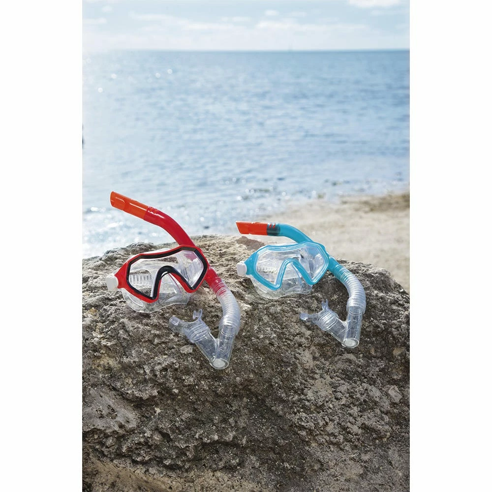 The Hydro-Swim™ Sparkling Sea Set by Bestway® is the perfect accessory for your kid’s fun underwater experience in the pool or the ocean. Geared for swimmers aged 7+, the set comes with a mask and a snorkel and is available in 2 assorted colors. The wide-view, polycarbonate lenses come with a double feathered edge skirt for a precision leak-resistant fit. The 100% latex free mask has a fully adjustable split head strap so it stays in place on your kid’s next underwater adventure. The form-fitted snorkel mouthpiece is designed for a comfortable fit and has an adjustable strap retainer. Whether swimming or snorkeling, be sure to bring along the Hydro-Swim Sparkling Sea Set!