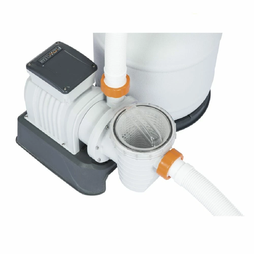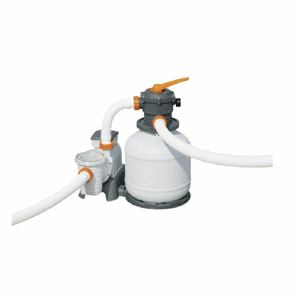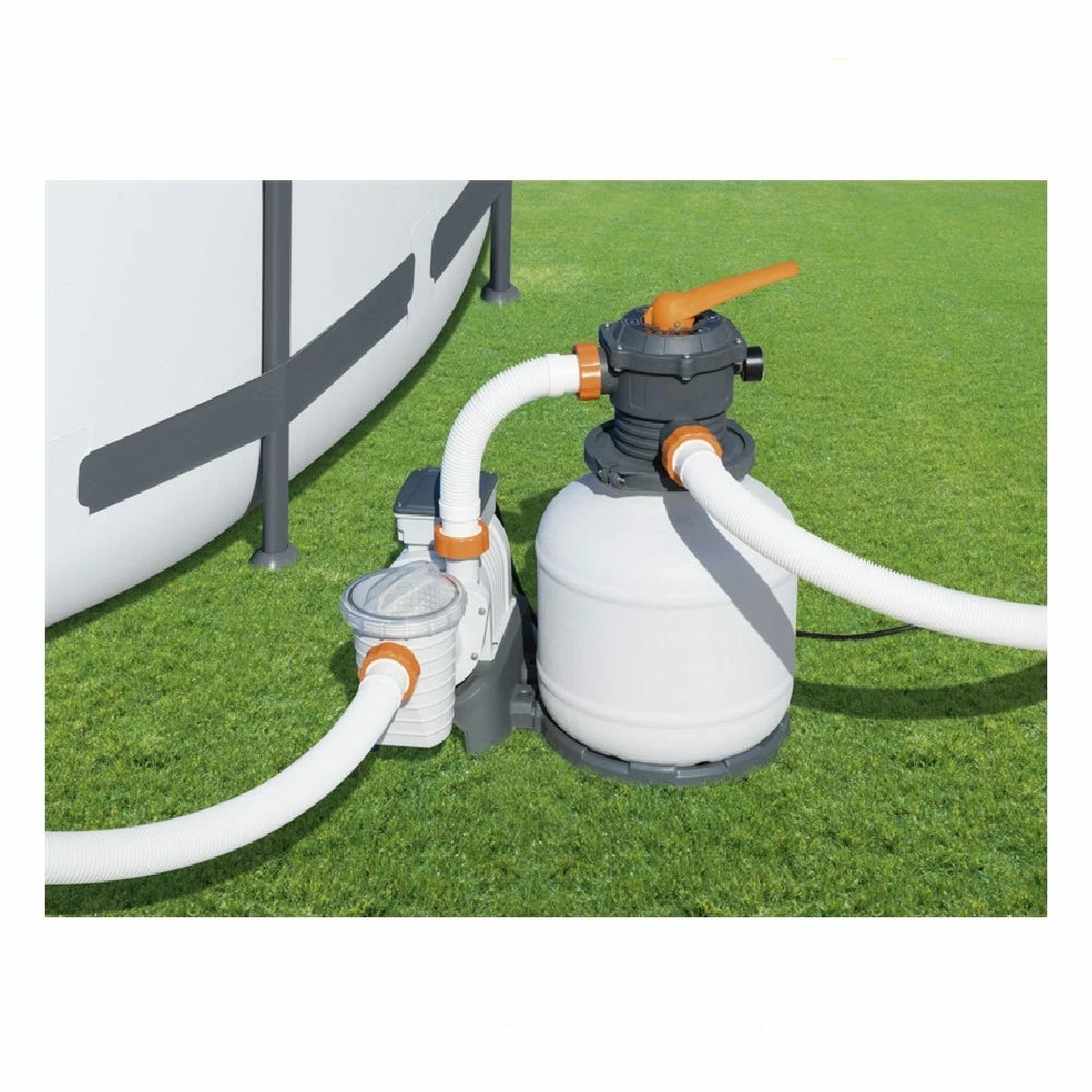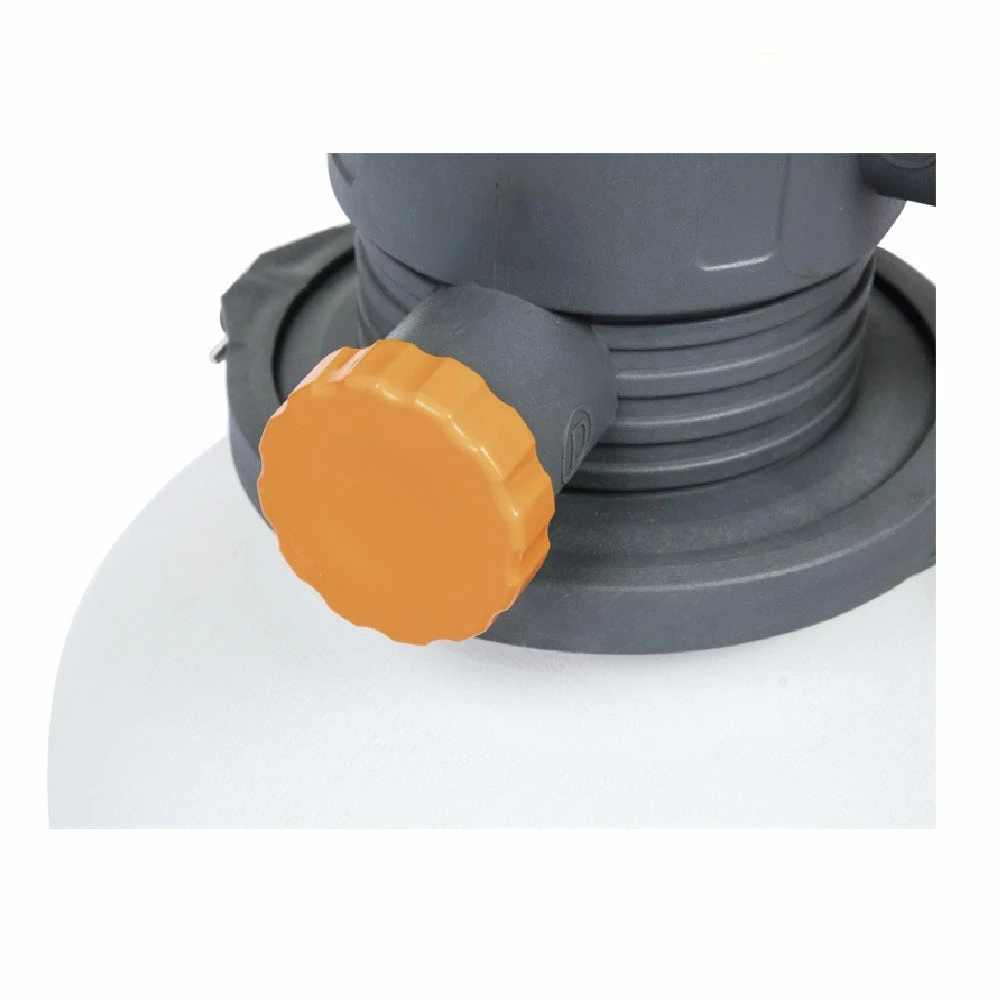 The Flowclear 2200 gal. Sand Filter from Bestway is a highly efficient and environmentally friendly way to keep clean water flowing through your above ground pool. It is a more cost effective solution as the pump uses silica sand instead of a traditional filter cartridge. While those cartridges need to be replaced every 2 weeks, silica sand lasts up to 3 years. The sand will trap dirt and debris, but a pre-filter strainer basket catches larger things so that the pump will last longer. The filter also comes with the ChemConnect Dispenser, which maintains clean, healthy water by providing a stable level of chlorine that is evenly dispersed throughout the pool. This product comes pre-assembled, and is compatible with most 300 – 14,400 gallon (1,100-54,500 L) above ground pools, as it comes with an adapter for pool valves with an outer diameter of 1.5 in (3.8 cm). The sand is not included with this filter – required sand size is #20 silica sand, 0.45-0.85 mm, approximately 44 lbs. The filter also works wonderfully with Bestway’s Polysphere Filtration Balls.