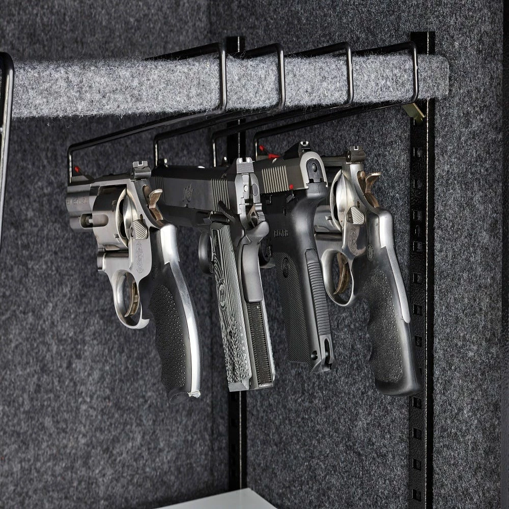 - Hardened steel wire supports heavy handguns (22 caliber and larger)