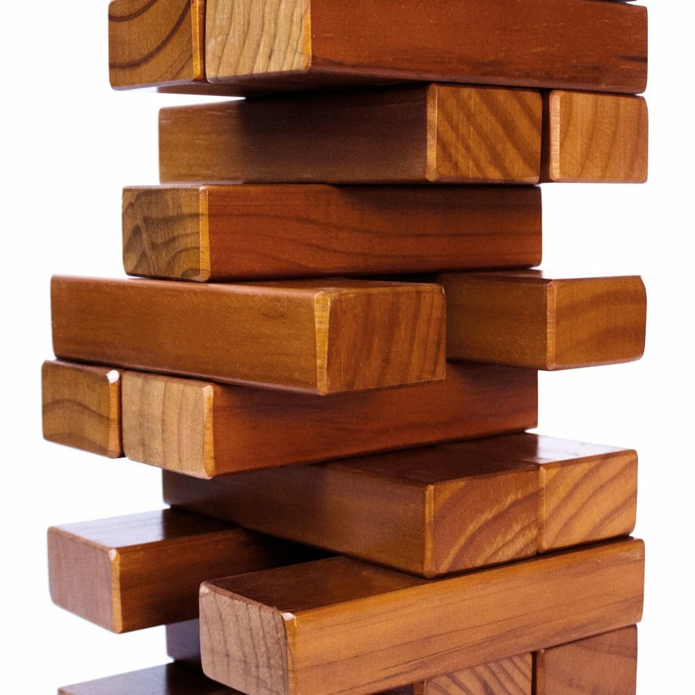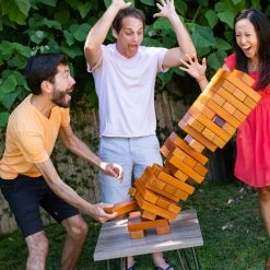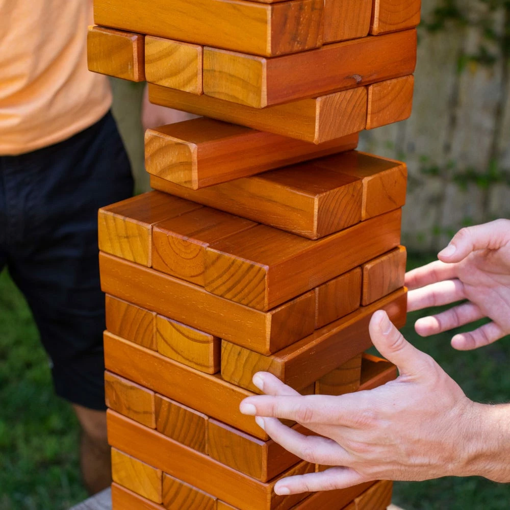 Beautifully stained and finished Giant Tumbling Timbers is everyone’s favorite stacking game on a GIANT scale. Build the tower and pull out pieces one by one, but don’t be the one to make it tumble!