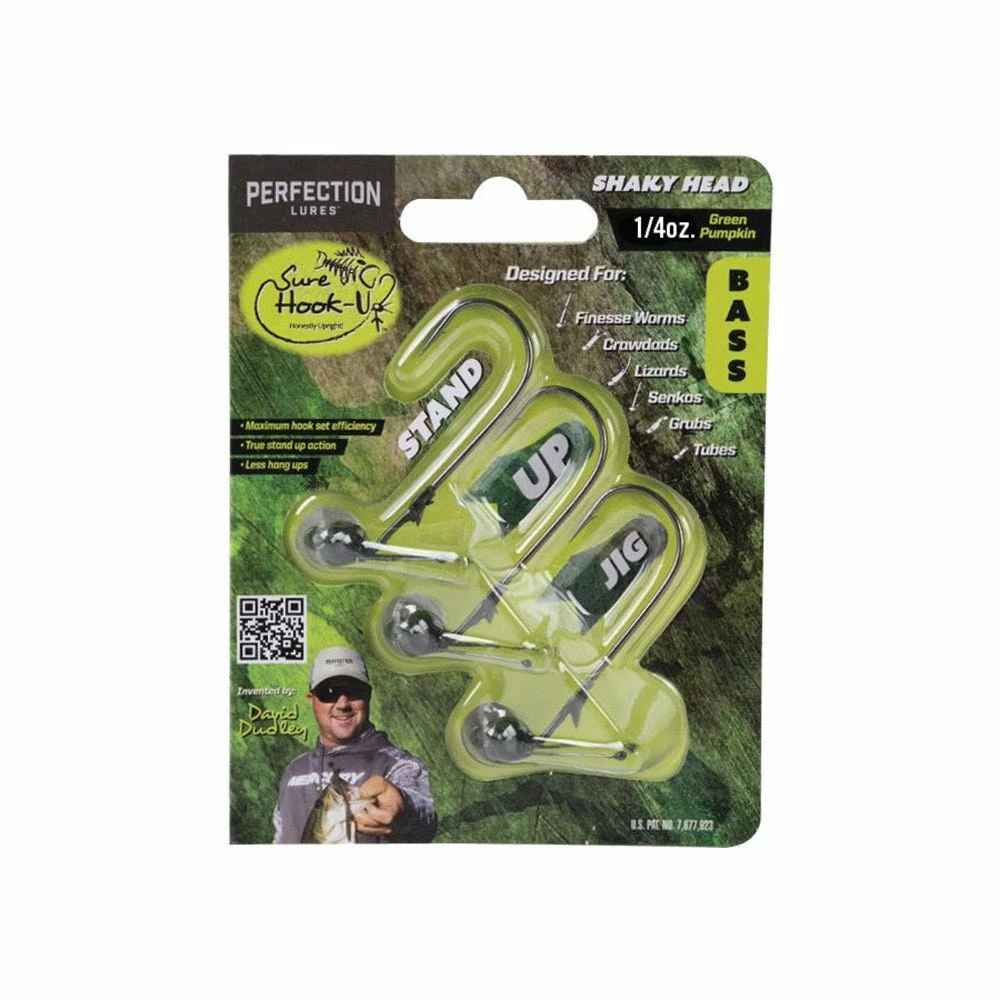 - (3) 1/4oz Shaky Head Stand Up Jigs-Green Pumpkin-True Stand Up Action