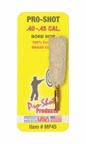 Pro-Shot Bore Mop .40-.45 Caliber MP45 are made of 100% cotton with a brass core. Top uses for the bore mop is cleaning and lubrication.