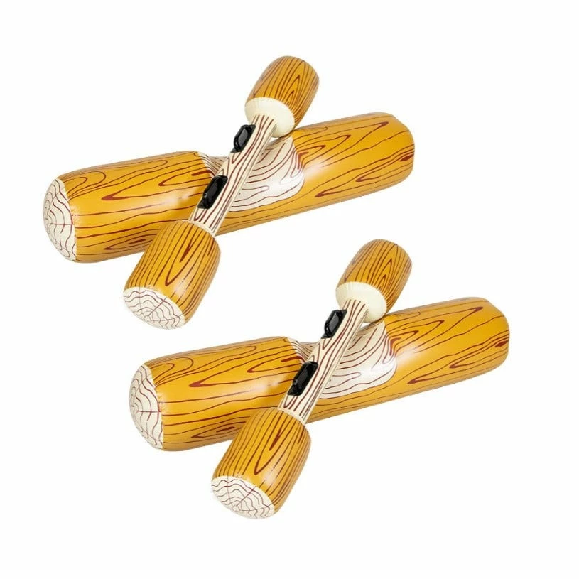 - Set includes 2 inflatable logs and 2 inflatable boppers with built in grab handles.